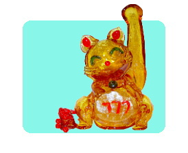 初代龍昇により考案された、お部屋の装飾品としても使え、 長く飾って楽しんで頂ける、べっ甲飴による飴細工です。 材料はグラニュー糖と水と水飴で、それを調合し、よく煮詰め、 砂糖がべっ甲色になるまで煮詰めた昔懐かしい香ばしい飴です。 飴は飴でも普通になめる飴とは一味違い とても飴とは思えないくらい素敵な芸術的なべっ甲飴です。 もちろん飴ですからすぐになめていただいてもいいのですが、飴に湿気を あてないことにより、お部屋の飾り物として長く飾って楽しんで頂けます。 具体的には飴が入っている袋の中に入れてある乾燥剤を2〜3カ月に 一度交換して頂ければ1年でも2年でもそれ以上でも、日持ちいたします。 べっ甲飴と言えば、昔は型などに流し込むのが主流でしたが 今は手鍋から冷たい鉄板の上に直接流しながら絵を描いていきます。 今流行の人気アニメキャラクターをはじめ似顔絵や動物など お客様のご要望に応えていろいろな作品をお作り致します。 特に、立体的な作品は、ほかでは見ることがないと思っております。 ぜひ一度 実演会場にお越し下さいませ。 龍 昇 |